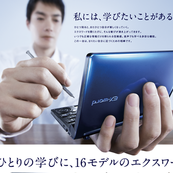 一人ひとりの学びに応える専用モデルを揃えているカシオの電子辞書エクスワード。電子辞書で学ぶことの歓び、ラインナップの多彩さを訴求しました。