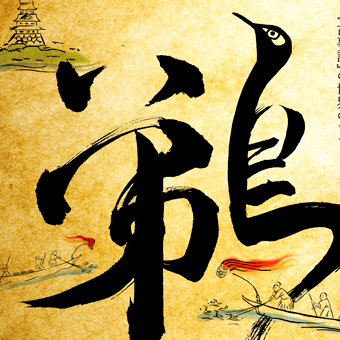 揮毫した鵜の一文字の背景には、墨絵風なデザインで炎と鵜匠、鵜など古くからの鵜飼いの様子を生き生きと描き、その歴史と伝統を表現。大きなイメージ作りを行いました。